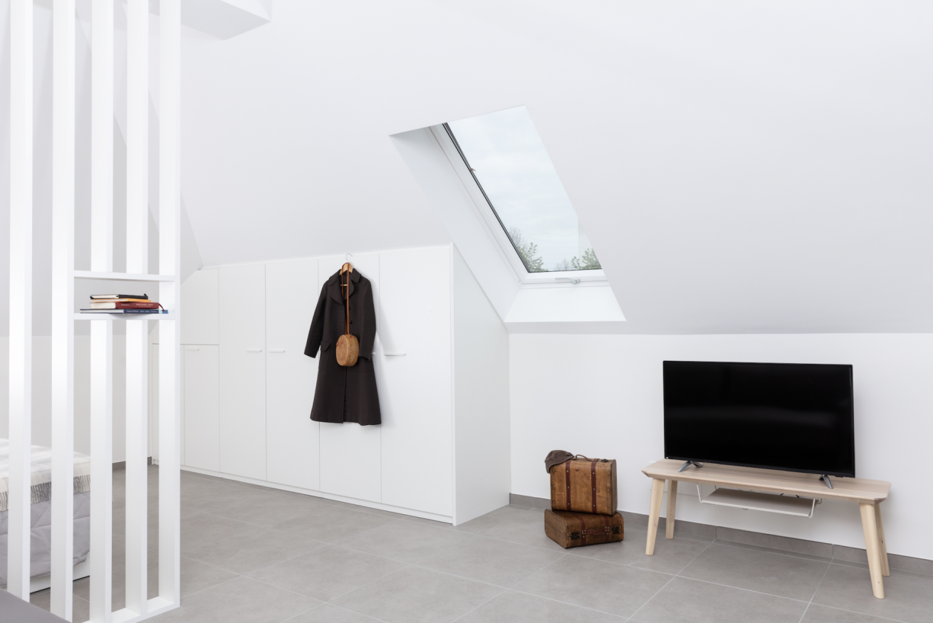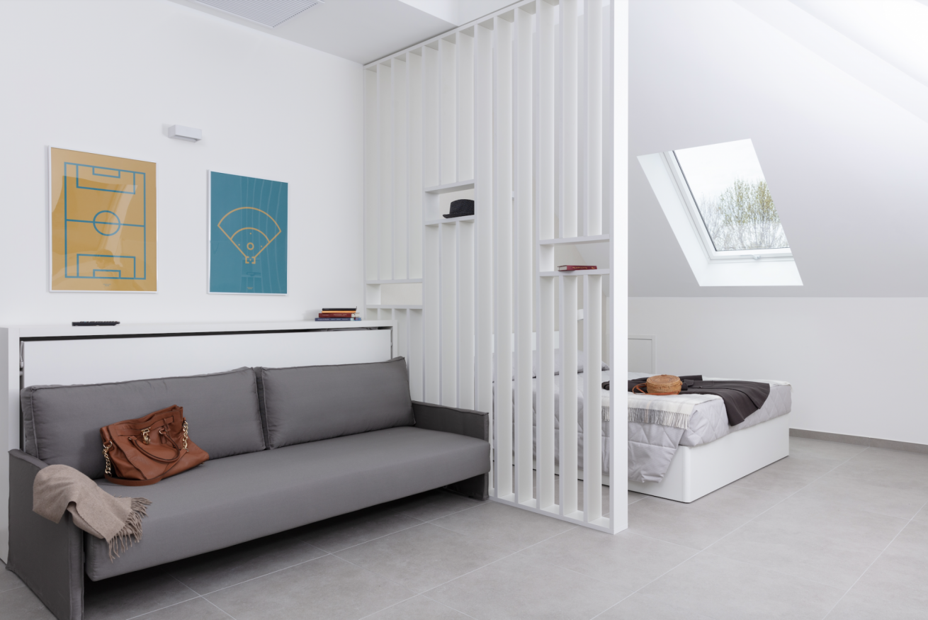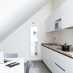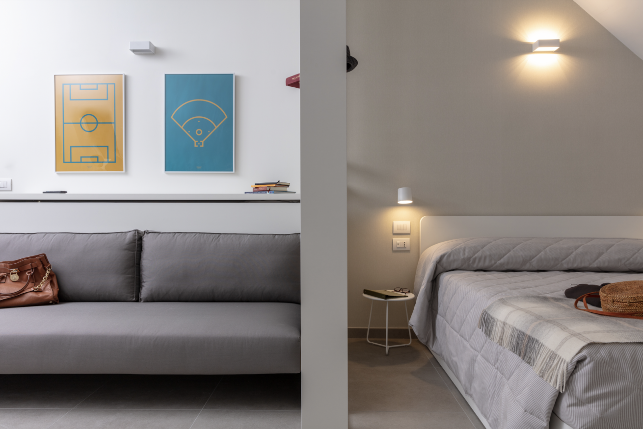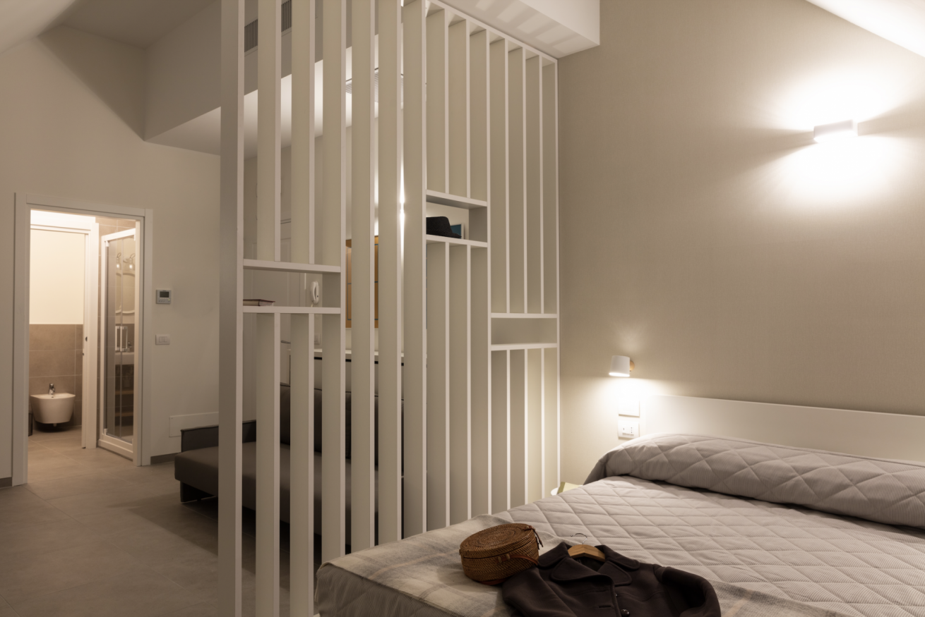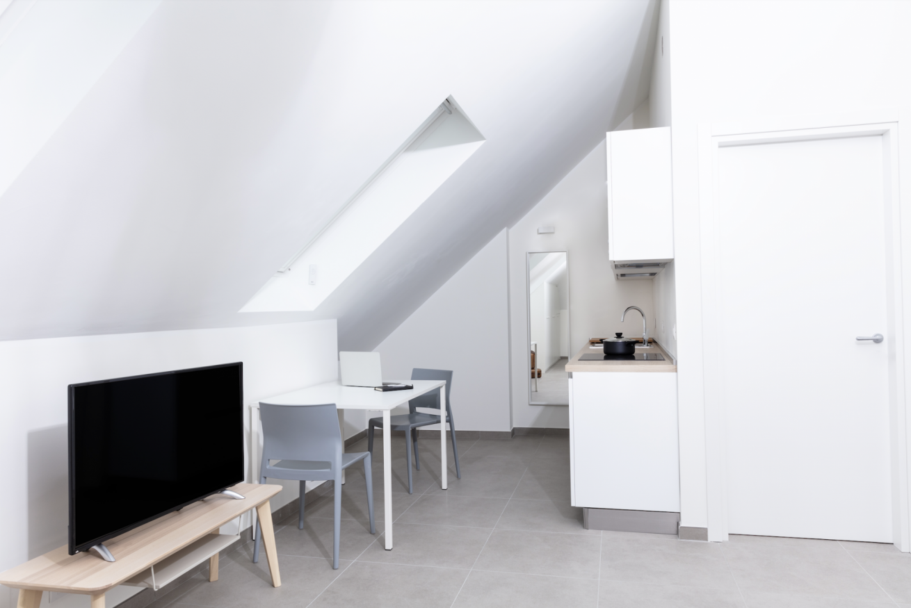 Questo attico deluxe all’ultimo piano dei Cirene Apartments offre un soggiorno luminoso e raffinato, ideale per ospitare fino a tre persone. La mansarda è sapientemente suddivisa in una zona giorno accogliente e una zona notte riservata, entrambe caratterizzate da arredi su misura che uniscono stile e funzionalità. La cucina a vista completamente attrezzata e il bagno funzionale completano la sistemazione, creando un ambiente armonioso e confortevole. L’alloggio rappresenta una soluzione elegante e intima, perfetta per un soggiorno piacevole e rilassante nel cuore di Milano.