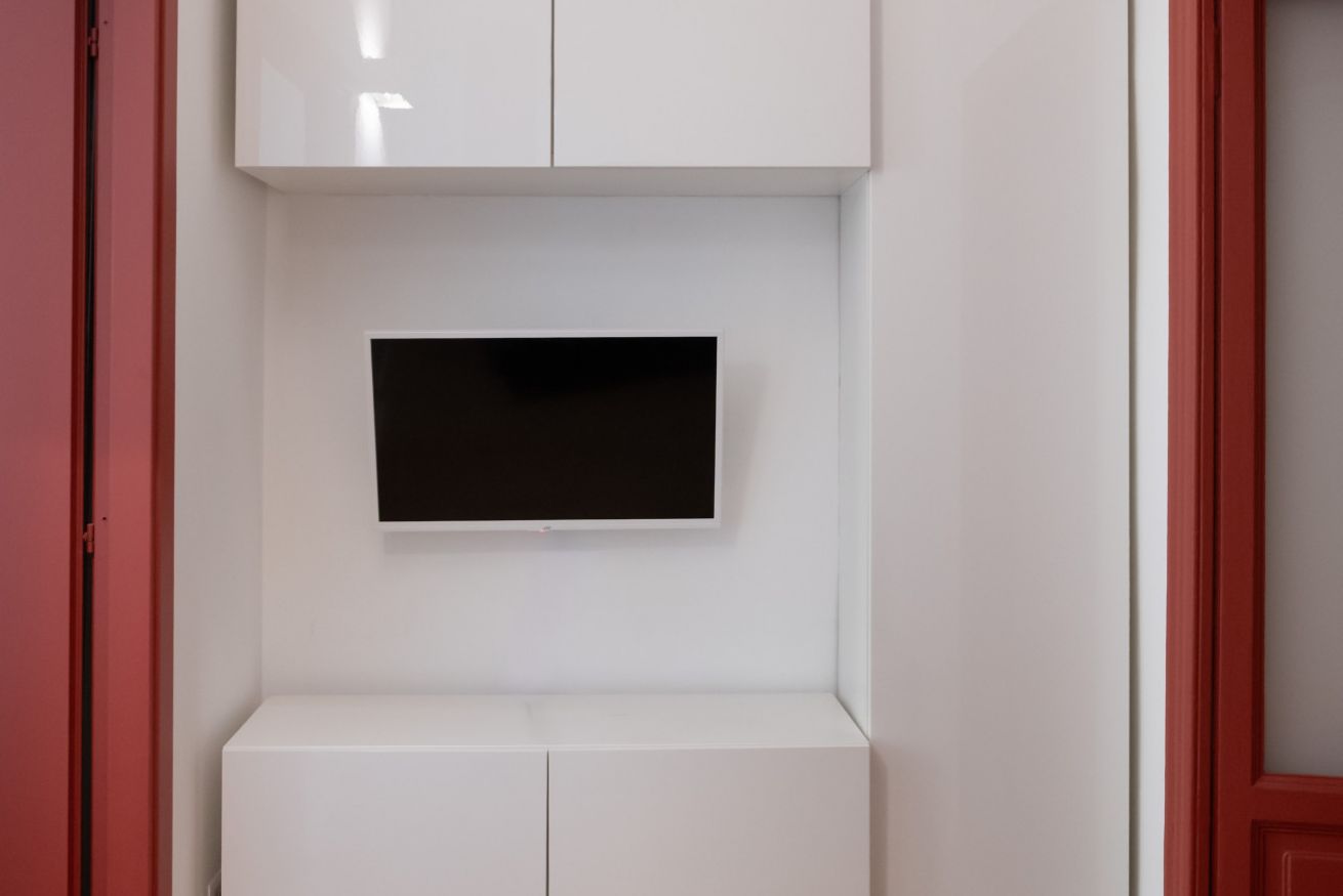 Il soggiorno è dotato di divano letto e TV, perfetto per momenti di relax.