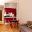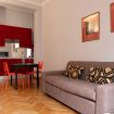 L’appartamento è curato nei dettagli e offre una cucina funzionale a vista sul soggiorno, ideale per sentirsi subito a casa. La zona living dispone di un comodo divano letto matrimoniale, TV e pratiche armadiature che garantiscono ordine e comfort.