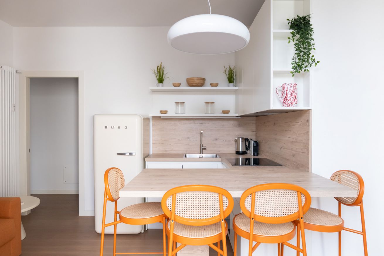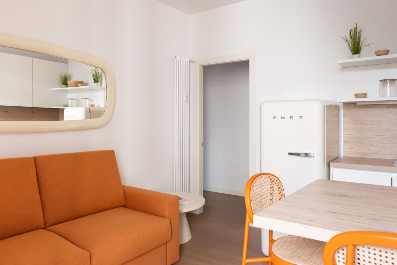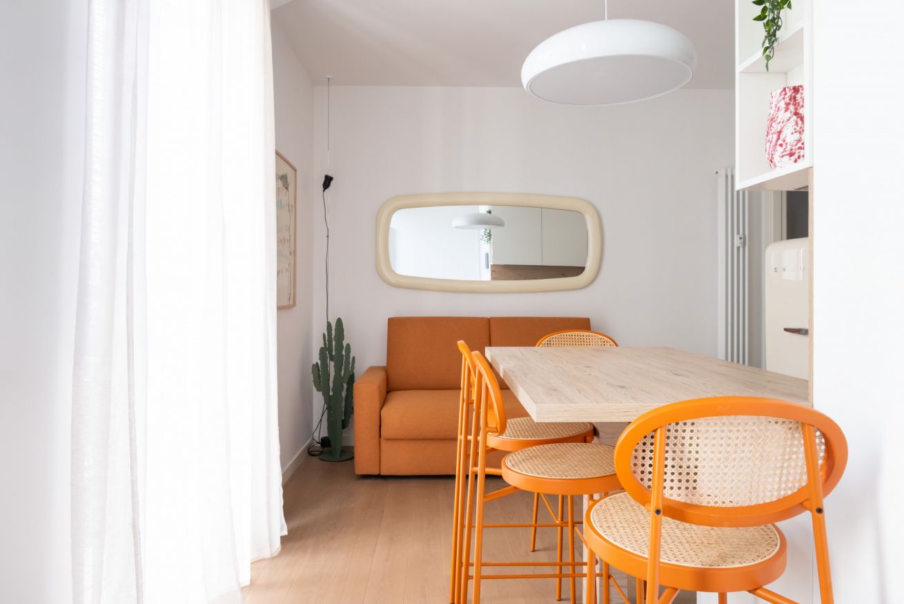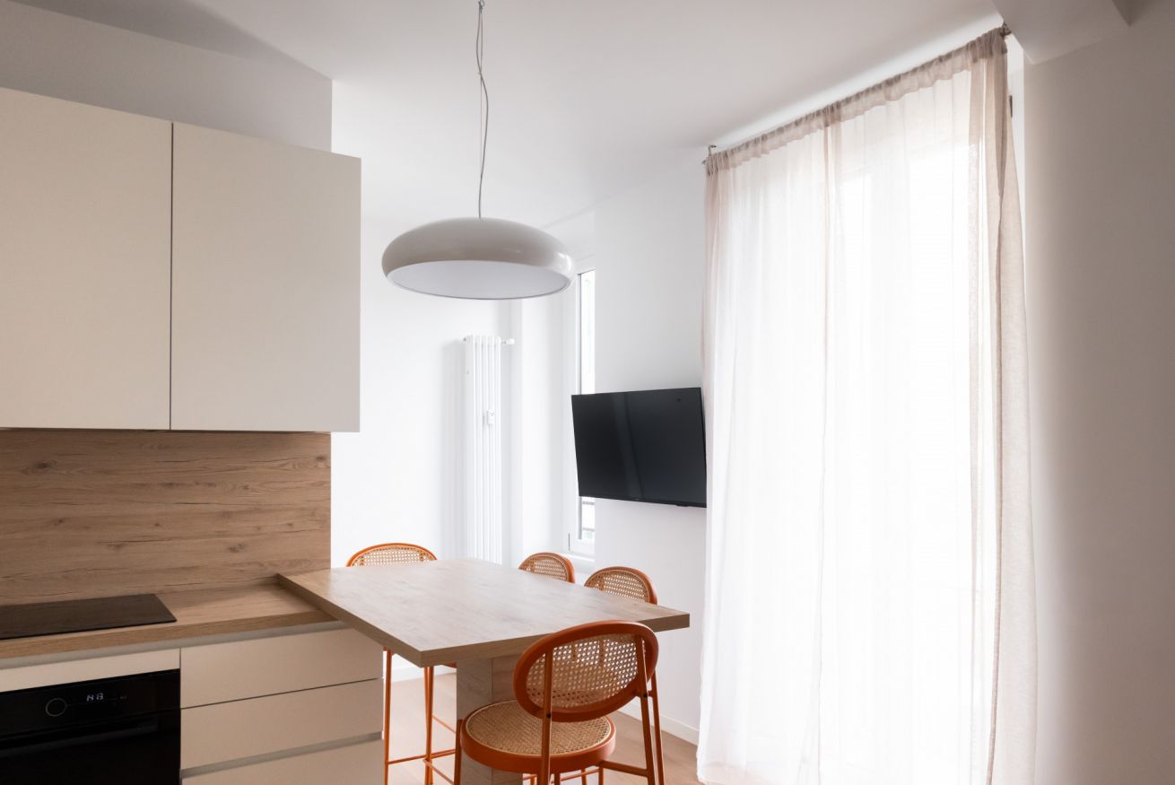 L’appartamento, completamente rinnovato con grande attenzione ai dettagli, si distingue per il suo stile moderno e molto colorato, capace di creare un’atmosfera accogliente, dinamica e raffinata. Gli ambienti sono luminosi e ben distribuiti: zona living con cucina a vista dal design contemporaneo, camera matrimoniale confortevole e bagno elegante con finiture di alta qualità. Ogni spazio è stato progettato per unire estetica e funzionalità.
