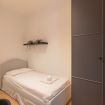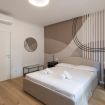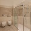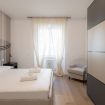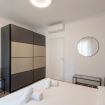 L’appartamento si compone di due camere da letto: una luminosa matrimoniale arredata con gusto contemporaneo, e una singola accogliente dotata di un delizioso balcone privato, perfetto per momenti di relax. La cucina è completamente attrezzata con elettrodomestici di ultima generazione, ideale sia per colazioni veloci che per cene più elaborate. Il bagno, spazioso ed elegante, è dotato di una grande doccia walk-in, doppi lavabi e finiture moderne che regalano un’esperienza da hotel di lusso.
