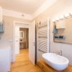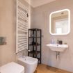 L'appartamento dispone di due bagni completi, entrambi moderni e funzionali, dotati di doccia, wc e lavabo. Gli spazi comuni sono arredati con gusto e includono una cucina attrezzata, un soggiorno luminoso e un'area pranzo, il tutto in un ambiente accogliente e conviviale.