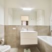 L'unità è composta da due bagni completi: uno attrezzato con vasca, ideale per momenti di relax, e l'altro con doccia, per un uso pratico e funzionale. Gli spazi sono ben distribuiti e arredati con gusto, creando un'atmosfera calda e confortevole.