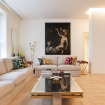 Entrando nell'appartamento, si viene accolti da una spaziosa zona soggiorno, caratterizzata da arredi raffinati e una decorazione di gusto che trasmette calore e ospitalità. Gli ampi spazi luminosi sono ideali per momenti di relax o per intrattenere gli ospiti, creando l'atmosfera perfetta per ogni occasione.