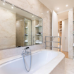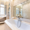Le tre camere da letto sono progettate per garantire il massimo comfort. La camera matrimoniale è un vero e proprio rifugio, dotata di un bagno privato con una lussuosa vasca, perfetta per rilassarsi dopo una lunga giornata. Inoltre, un ampio spogliatoio offre spazio sufficiente per sistemare i propri effetti personali in modo ordinato.