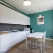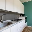 Cucina completamente attrezzata con top pregiato in marmo, dotata di forno, piano cottura, macchina del caffè, frigorifero, stoviglie e tutto il necessario per cucinare come a casa
