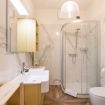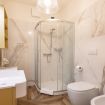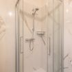 Bagno moderno con ampia doccia, asciugacapelli, lavatrice e tutto il necessario per il vostro comfort