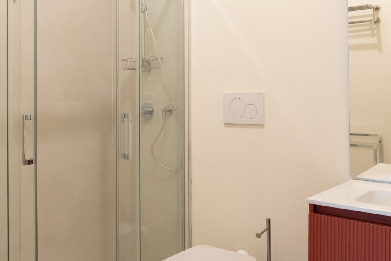 Il bagno è comodo e completo, dotato di una pratica doccia e di tutti i comfort essenziali.