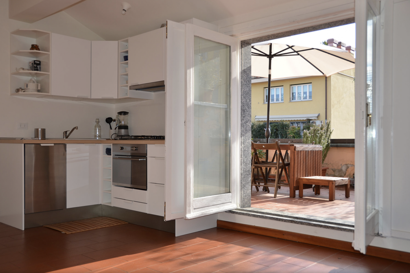 L’alloggio si distingue per l’ampio terrazzo privato, perfetto per godersi momenti all’aperto.