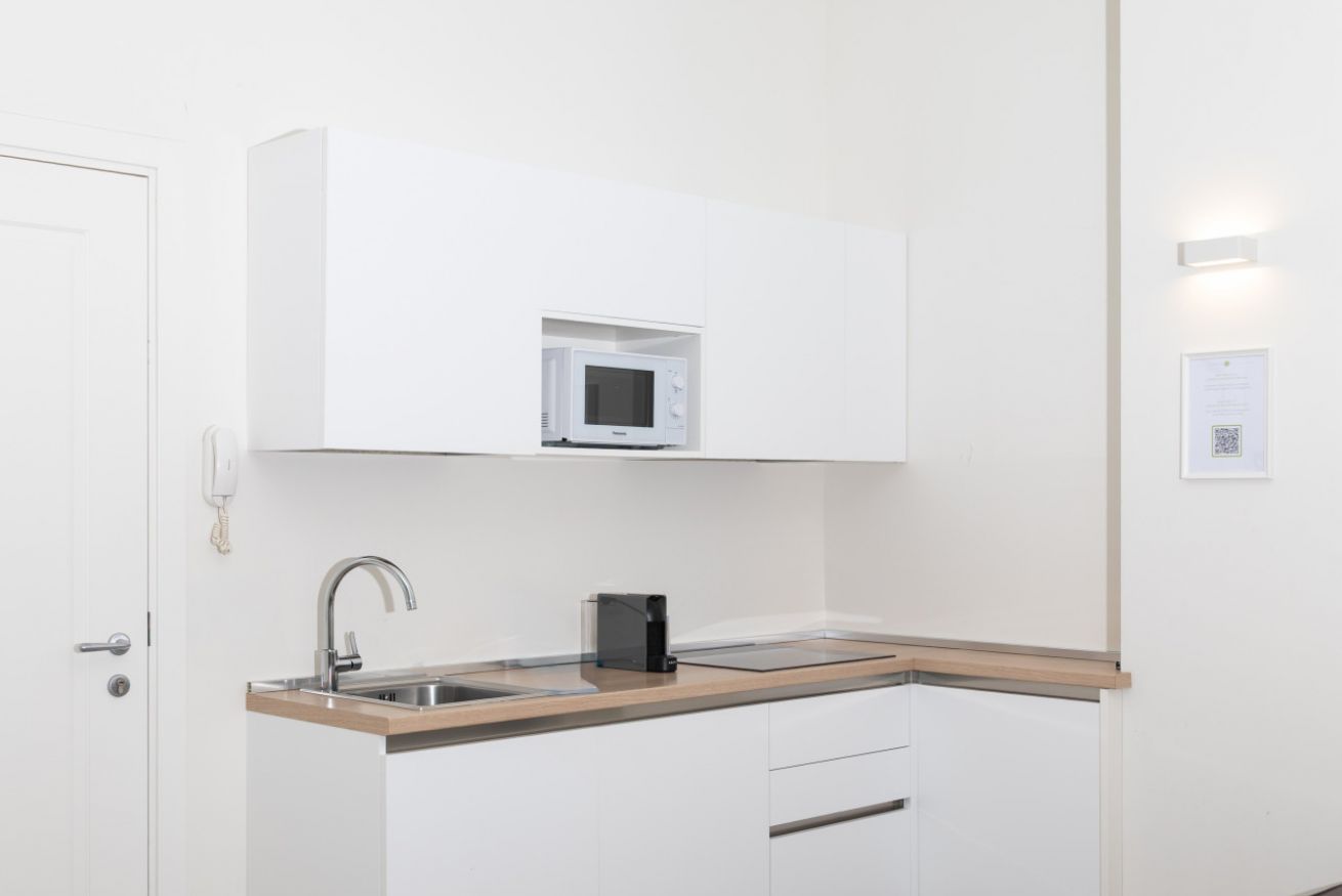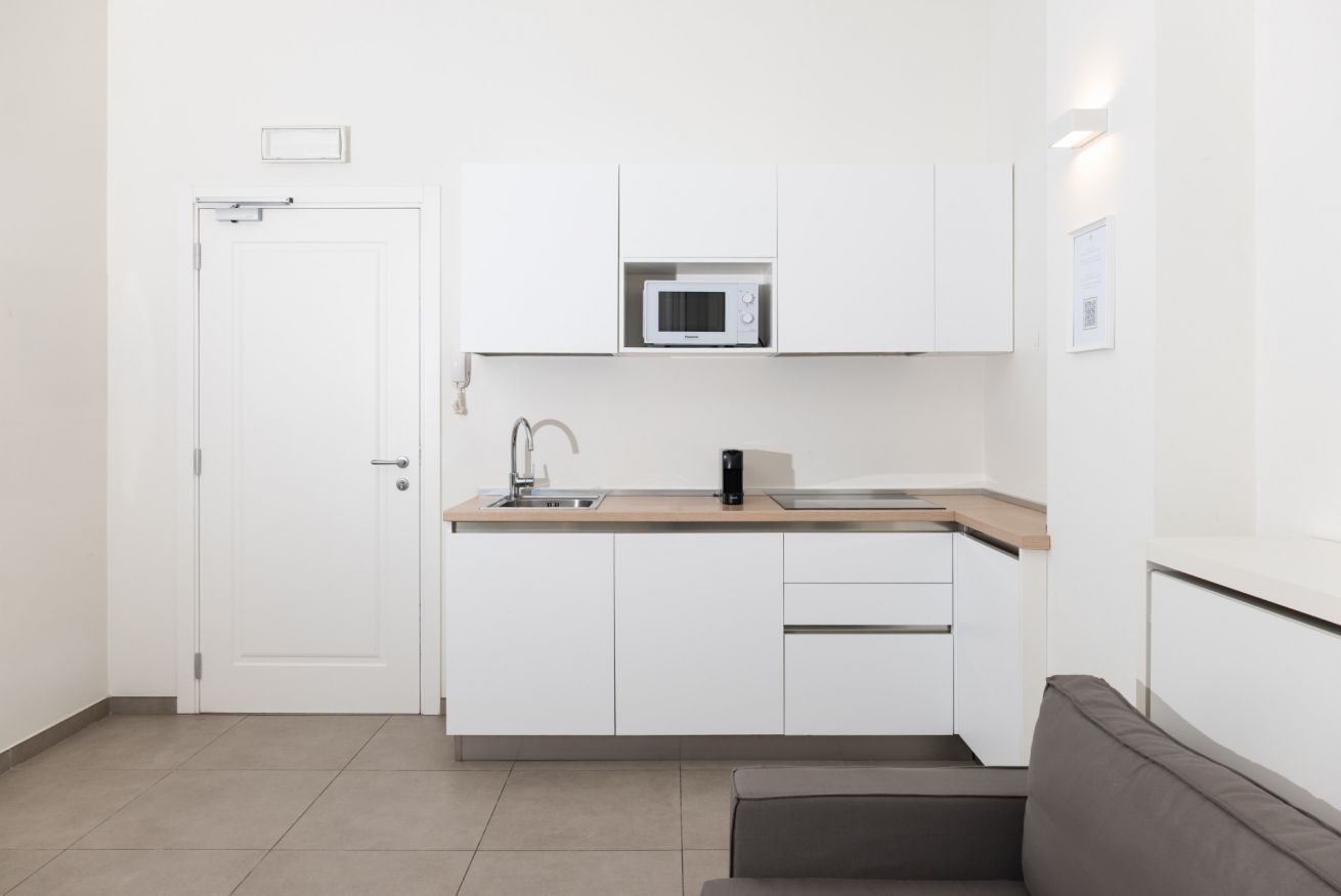 La Suite del Cirene Apartments offre un soggiorno raffinato e confortevole nel cuore di Milano, ideale per ospitare fino a tre persone. L’appartamento si distingue per la sua atmosfera luminosa e accogliente: la zona giorno, arredata con gusto, comprende un angolo cottura completamente attrezzato, mentre lo spazio notte, appartato e silenzioso, ospita un comodo letto matrimoniale affiancato da un pratico divano-letto singolo a scomparsa.